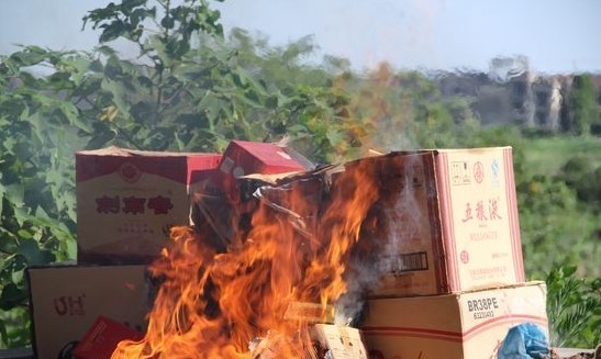 为了让广大群众喝上“放心酒”,营造安全放心的消费环境,维护酒类流通市场秩序,近日,株洲县商务局对前段时间查获的一批假冒伪劣酒类商品进行了集中销毁。这次销毁的酒类商品均是县商务局前段时间查处的假酒,有假冒的飞天茅台、五粮液、国窖1573、剑南春等4个品牌的酒共计118瓶,总价值约10万元。