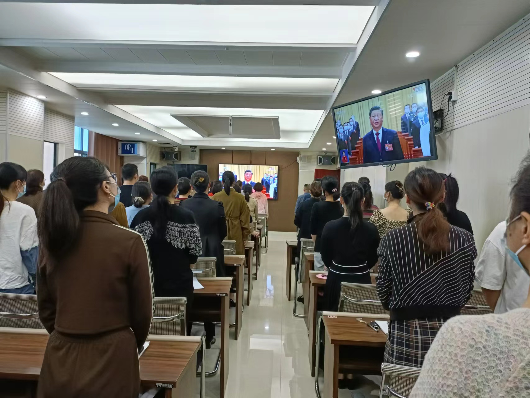 区人民医院党员干部职工集中收看党的二十大开幕会。