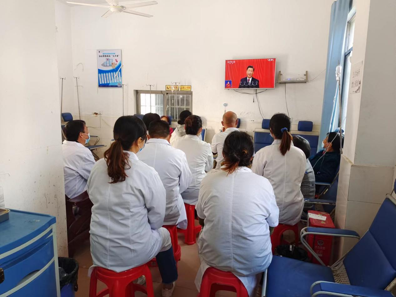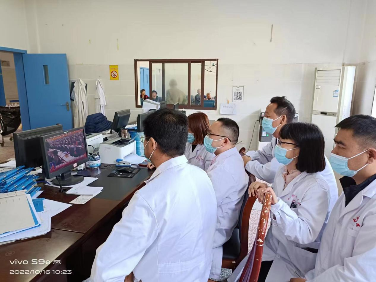 龙门镇卫生院党员干部职工集中收看党的二十大开幕会。