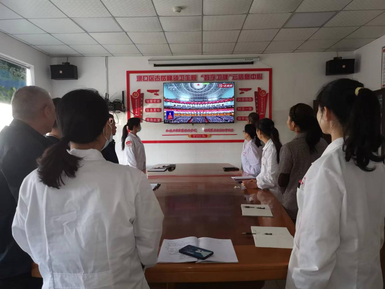 古岳峰镇卫生院党员干部职工集中收看党的二十大开幕会。