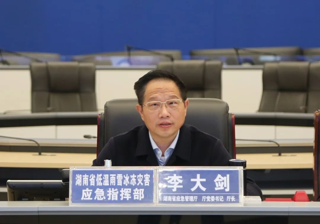 11月28日下午,湖南省低温雨雪冰冻灾害应急指挥部秘书长、省应急管理厅厅长李大剑主持召开防御低温雨雪天气视频调度会,传达省委、省政府领导指示批示精神,分析研判形势,动员全省迅速行动,全力应对今年入冬以来最强冷空气过程。