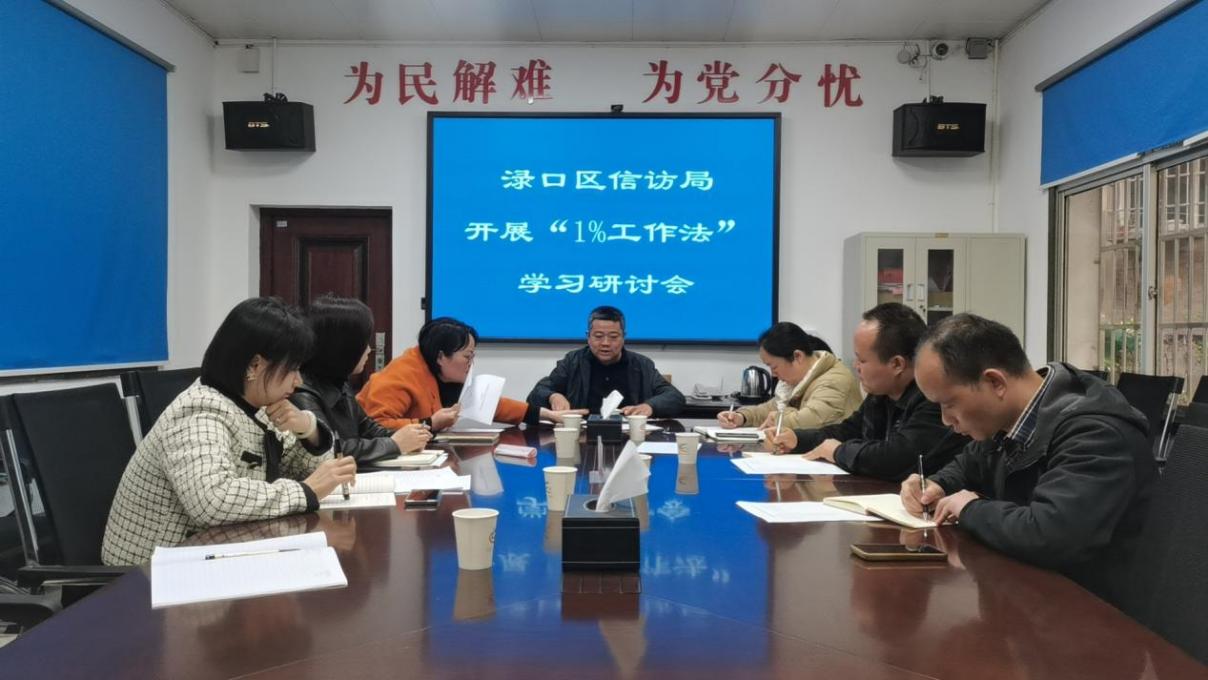 会上学习了上级关于《他山之石可以攻玉—学习借鉴芜湖"1%工作法"的思考建议》背景、意义以及创新特点,围绕"1%工作法"聚焦准、切口小、成效好,深入研讨信访"1%工作法",积极回应群众关切、主动化解信访积案,只要群众诉求有1%合理成分,要尽100%努力去解决。