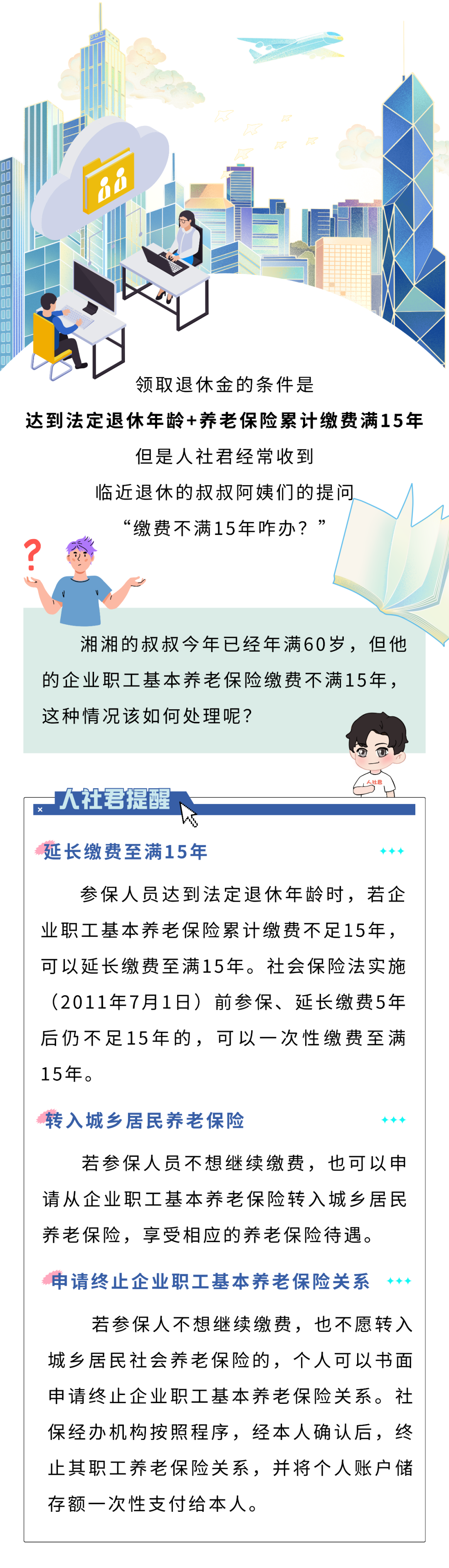 【温暖社保·每周一课】到达退休年龄时,企业职工养老保险未满15年怎么办?
