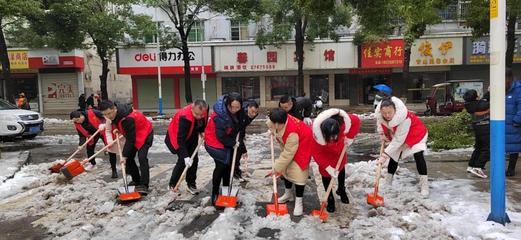 渌口区自然资源局迅速组建除雪防灾青年突击队,深入城区主街道、社区清扫冰雪,切实为群众办好每一件实事