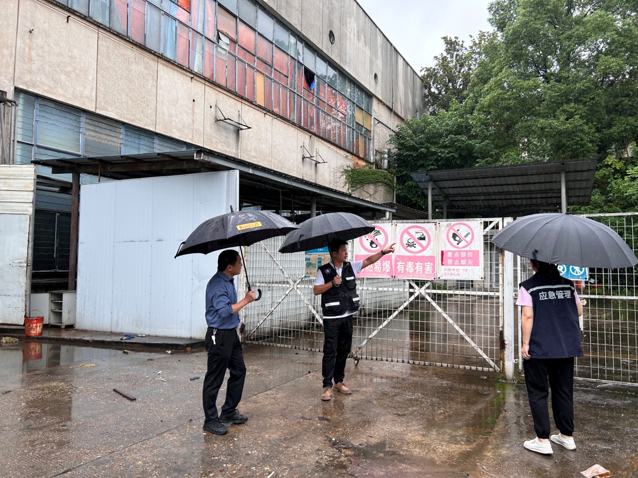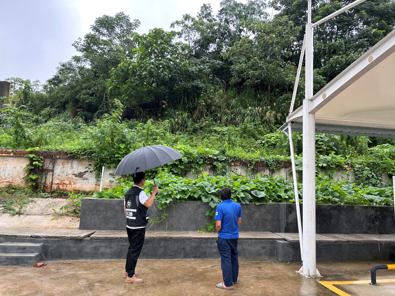 检查人员重点对危险化学品储存场所进行检查,要求企业负责人及时关注天气变化,加强值班值守和巡查检查,加强对危险化学品储存设施周边和厂房的安全巡查,特别是对靠近山体的围墙设置警示标志或警戒线,防止强降雨引发地质灾害造成人员财产损失。