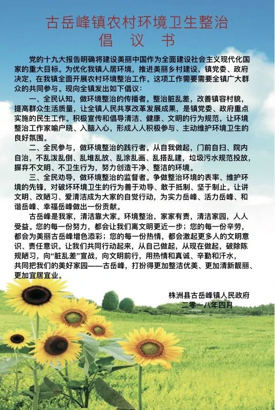 【岳峰动态】古岳峰镇农村环境卫生整治倡议书