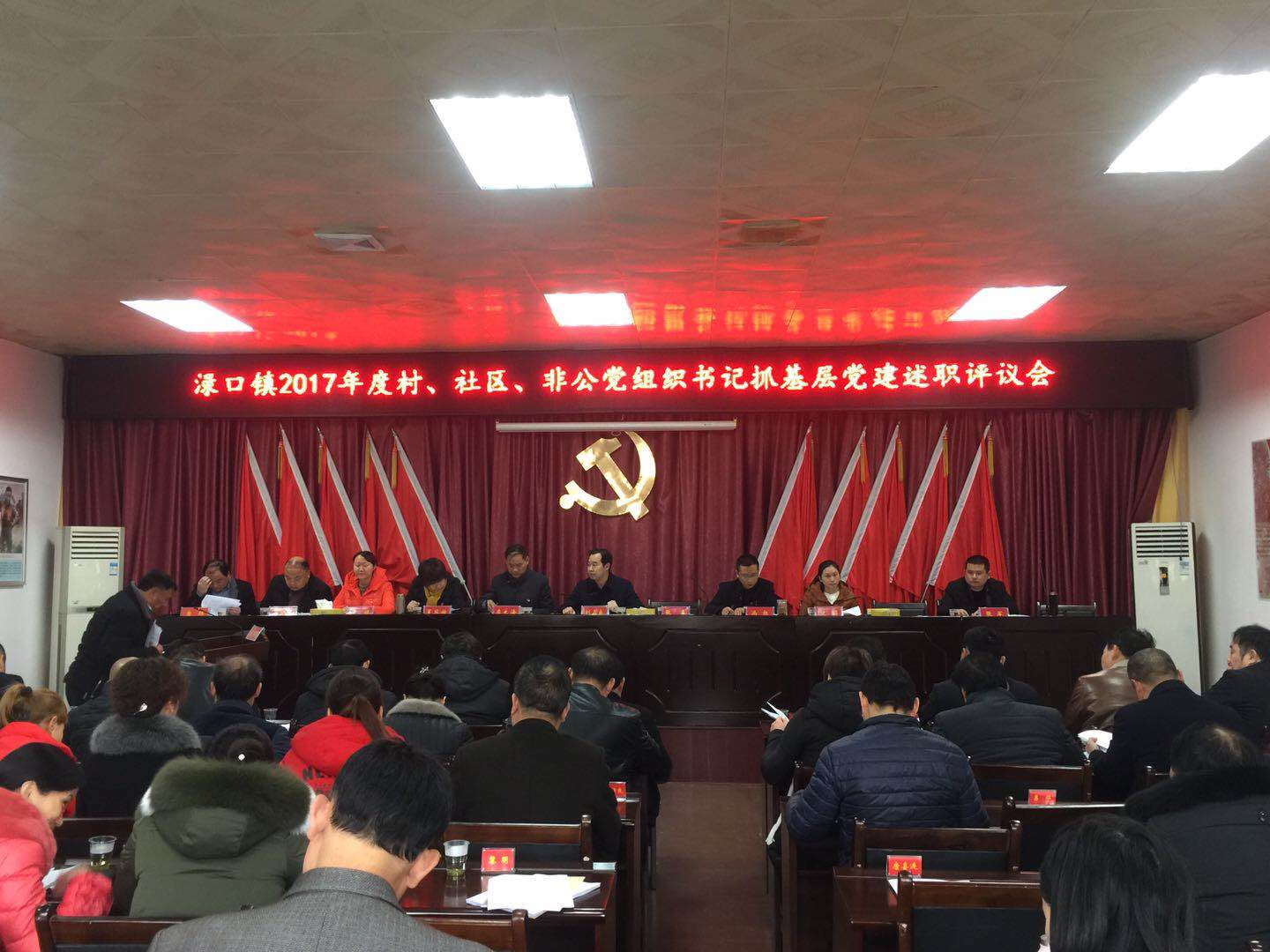 为深入学习贯彻党的十九大精神,以习近平新时代中国特色社会主义思想为指导,进一步推动全面从严治党向纵深发展,促进全面提升基层党组织组织力,2月2日,渌口镇召开2017年度村、社区、非公党组织书记抓基层党建述职评议会议,镇党委副书记李大海主持,镇党政班子成员、市县派第一支书、镇派第一书记、“两代表一委员”、选调生、大学生村官以及各村、社区、非公党组织书记参加会议。