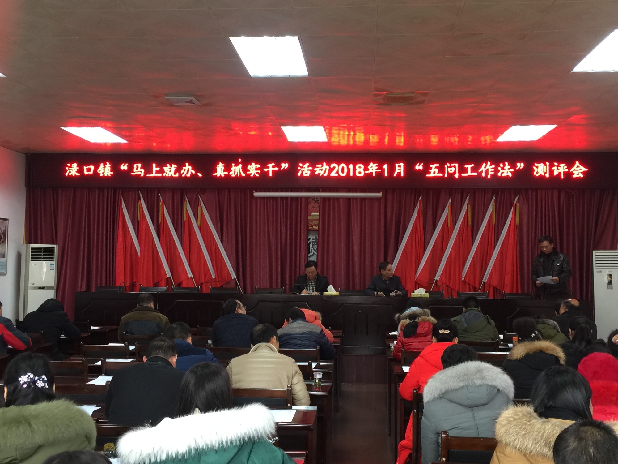 近日,渌口镇召开“马上就办、真抓实干”工作测评会,会上镇纪委副书记赵娅和城镇办成员陈省就上月工作情况向全体机关干部进行了专项汇报,随后分管领导分别对他们的工作进行点评,在对他们工作表示肯定的同时也对他们提出建议,希望他们延续过去的良好表现,今后的工作再创辉煌。测评结束后,镇纪委书记罗纪昂在会上再次带领全体机关干部学习“纠四风、治陋习”相关文件精神,警醒大家春节来临之际,不能放松自己,时刻遵守各项规章制度和纪律。