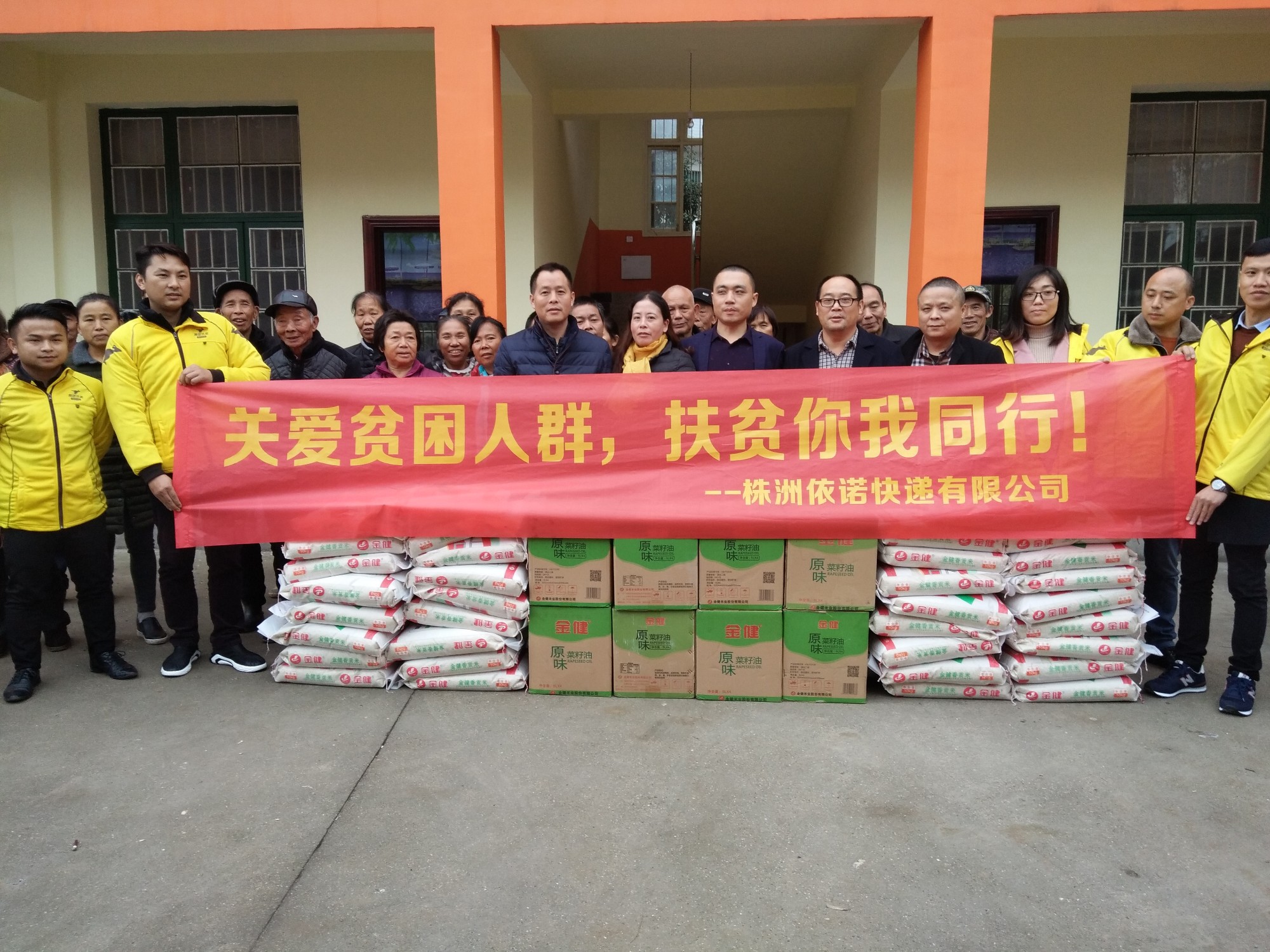 12月4日,株洲依诺快递有限公司副总刘斌带着快递公司的工作人员顶着寒风,驱车1个多小时到龙船镇龙泉村走访慰问33户建档立卡贫困户,并为贫困户送来了米和油。刘斌是龙船镇龙泉村丁家组的村民,在事业有成时,他饮水思源不忘初心,时刻惦记着家乡人民,想尽自己所能帮扶家乡的贫困户,他每到一户贫困户家中慰问都仔细了解贫困户家中的困难,为他们送上米和食用油,并鼓励他们树立信心,在困境中自立自强,一次次询问,一句句体贴,一声声鼓励,让寒冷的冬天变得温馨和谐。