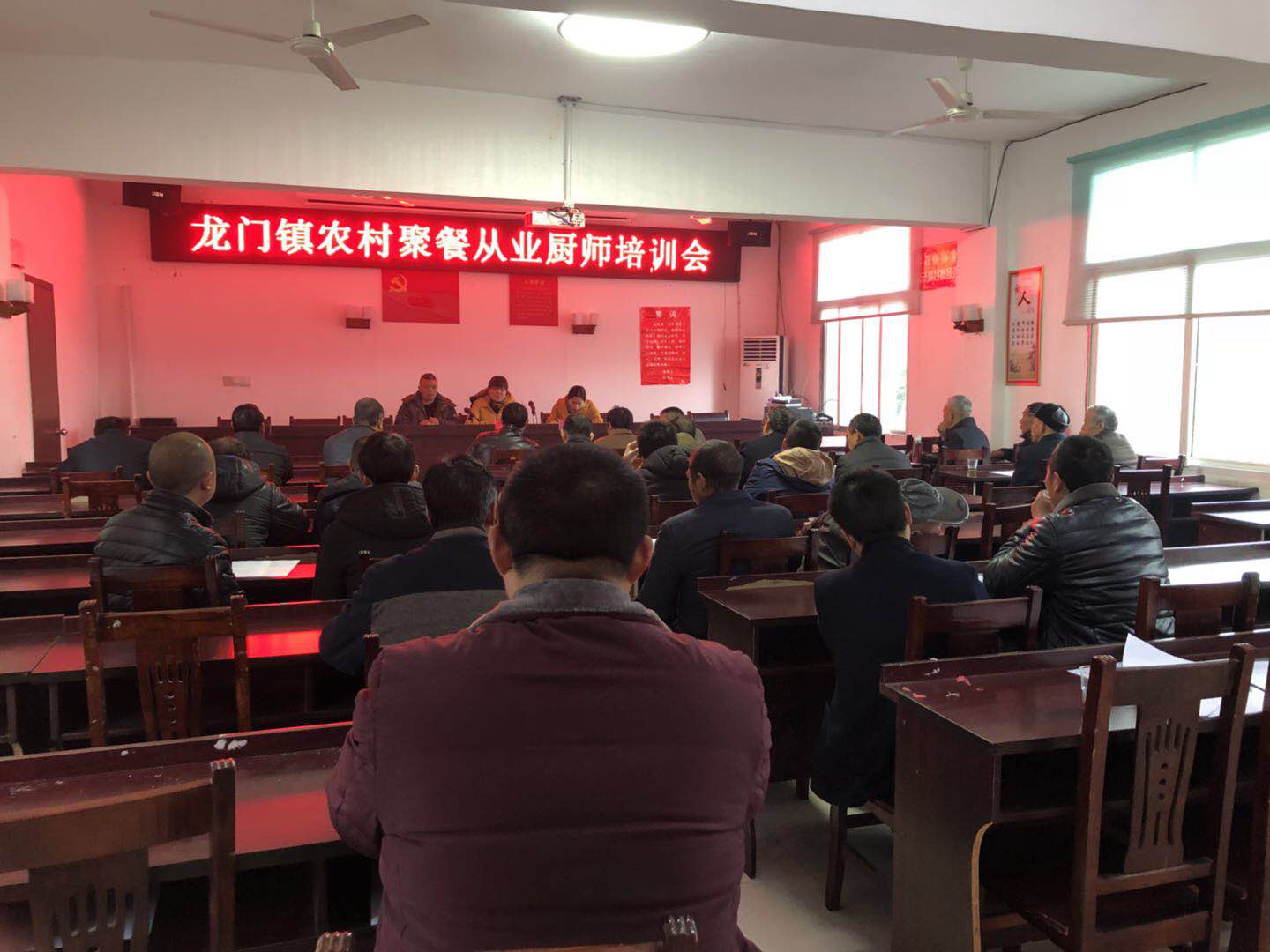 12月1日日,龙门镇举办了农村集体聚餐从业厨师培训会,会议由龙门镇党委委员文永忠主持。县食品药品工商质量监督管理局餐饮股股长黄革辉、餐饮股干部兰岚、食安站长王超辉参加会议。全镇40多名农村厨师灿姐培训。