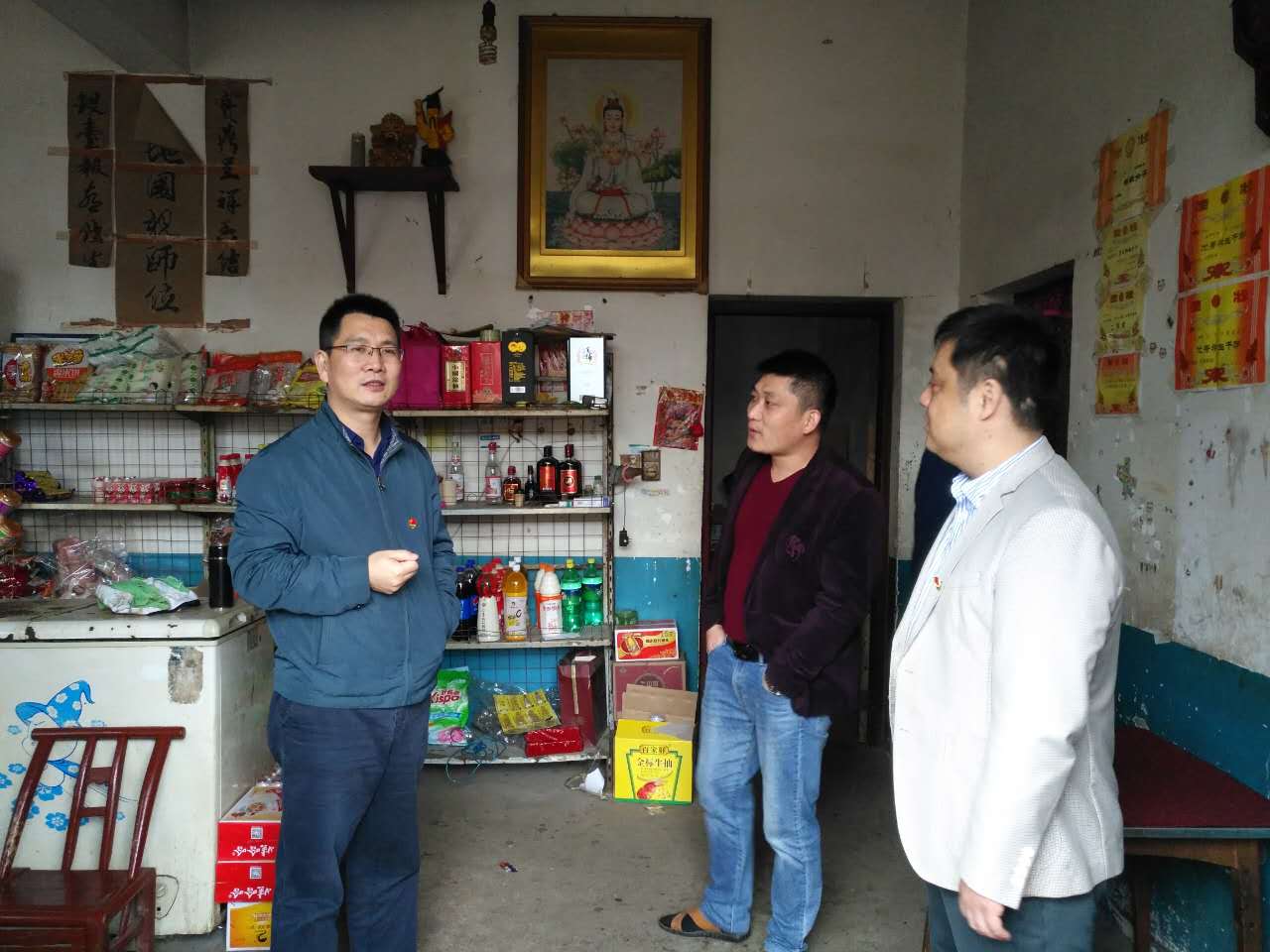 在党的十九大召开之日,县委常委、组织部部长谭成华、副部长陈继红、县委党建办主任袁斌一行到我镇湖塘村和堂市村进行走访调研,我镇党委书记刘文军、党委副书记姜鑫、党委委员汤望林陪同走访。