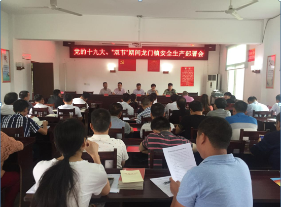 9月29日,龙门镇开展党的十九大暨“双节”期间安全生产工作部署会,全体机关干部、村干部参加了本次会议。镇安监站长唐启龙在会上表示,各村要紧密结合自身实际,进一步作出安排部署,落实安全保障措施,切实做好十九大及“两节”期间安全生产工作,有效预防和减少各类安全事故。
