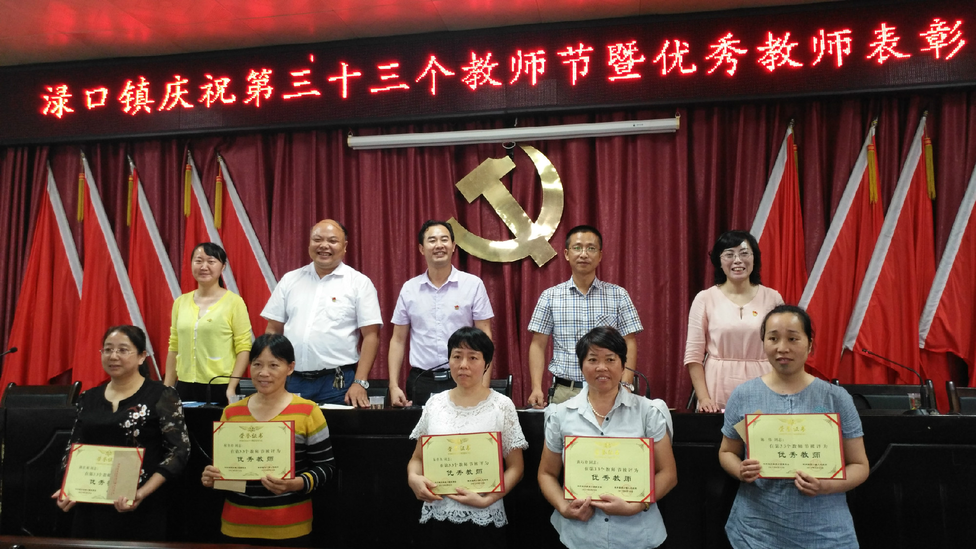 在第33个教师节来临之际,为了大力弘扬广大教师和教育工作者爱岗敬业、无私奉献的精神,进一步提高我镇教育事业发展水平,渌口镇庆祝第33个教师节暨优秀教师表彰大会在五楼大会议室圆满举行。