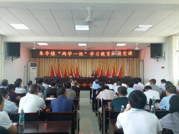 近日,县委常委、宣传部长刘美和深入朱亭镇为基层党员干部讲授“两学一做”学习教育专题党课。镇全体机关干部、各村(社区)党(总)支部书记、副书记、村主任参加会议。