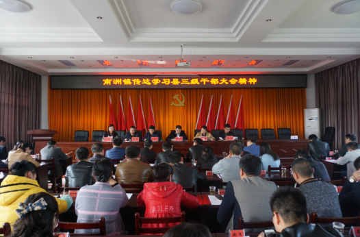 近日,南洲镇召开专题会议,认真传达学习全县三级干部大会精神。会议由镇党委副书记、镇长龚麒麟主持,全体机关干部参加会议。