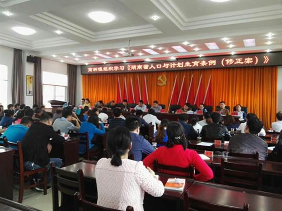 南洲镇组织学习《湖南省人口与计划生育条例(修正案)》会议现场