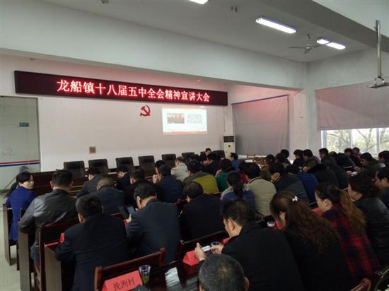 镇党委书记刘占良同志要求,龙船镇各党政领导、干部、村党组织要及时传达学习五中全会精神,做到学以致用、用以促学,内化于心、外化于行。切实把学习成果转化为领导发展的实际能力、谋划发展的正确思路、促进发展的政策举措,全镇上下要以党的十八届五中全会精神为引领,加大攻坚力度,落准落细落实全年各项工作任务目标。
