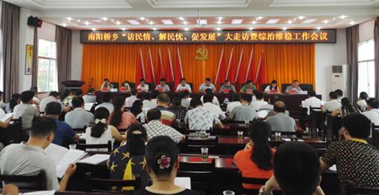 近日,南阳桥乡组织召开“访民情、解民忧、转作风、促发展”大走访暨综治维稳工作会议,全体机关干部和村支两委干部参加会议,乡长谭桂平主持会议。