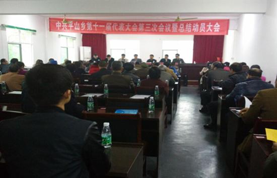 近日,平山乡召开中共第十一届代表大会第三次会议暨总结动员大会。县委组织部副部长胡年明,主任龙理森出席会议,乡长刘文军主持会议。