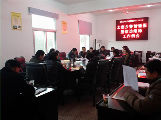 会上通报了太湖乡2015年2月警情,回顾2014年综治工作,安排部署2015年太湖乡信访维稳工作。本月太湖乡无恶性刑事案件发生,治安环境良好。