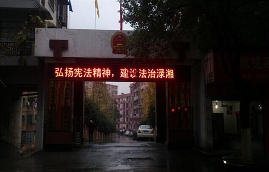 在12月1日—10日活动期间,该镇充分利用镇政府大门上方的电子屏,全天24小时滚动播放宣传标语,弘扬法制精神。
