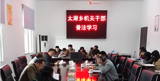 为积极推进“六五”普法,弘扬法治精神,建设法治文化,在全乡营造良好法治氛围。太湖乡组织全体机关干部进行普法学习,这也是太湖乡干部讲坛的主题活动之一。