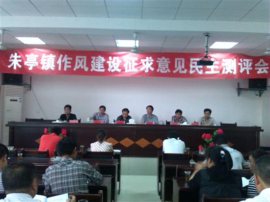 为进一步推进党的群众路线教育实践活动,检验第一阶段活动成果。近日,朱亭镇召开了作风建设征求意见测评会。会议由该镇党委书记周铁刚主持,县委第三督导组到会指导,镇机关干部、各村支部书记、居委会负责人以及二级机构、非公有制经济党组织负责人共70余人参加了会议。