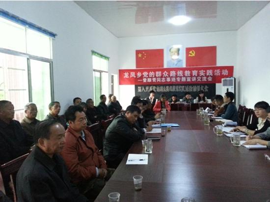 五四运动96周年到来之际,龙凤乡青年干部邀请天台寺村村支书曾顺青同志与茅塘村30多名党员、群众一起开展面对面的龙凤乡党的群众路线教育实践活动曾顺青先进事迹宣讲交流会。