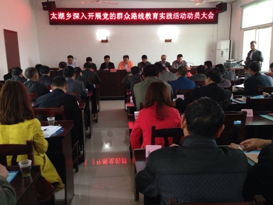 近日,太湖乡召开党的群众路线教育实践活动动员大会,太湖乡全体机关干部、村支部书记、两代表一委员均参加会议,会议由乡长林辉主持,县委常委、纪委书记曹道忠,县派驻太湖督导组姚瑞琪等出席了会议。