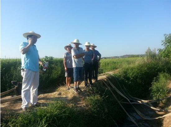 党建帮扶工作队员在太湖乡洪塘村察看抽水抗旱情况