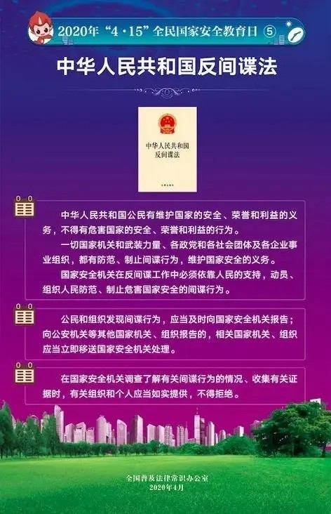 2020年4月15日是第5个全民国家安全教育日,今年的主题是: