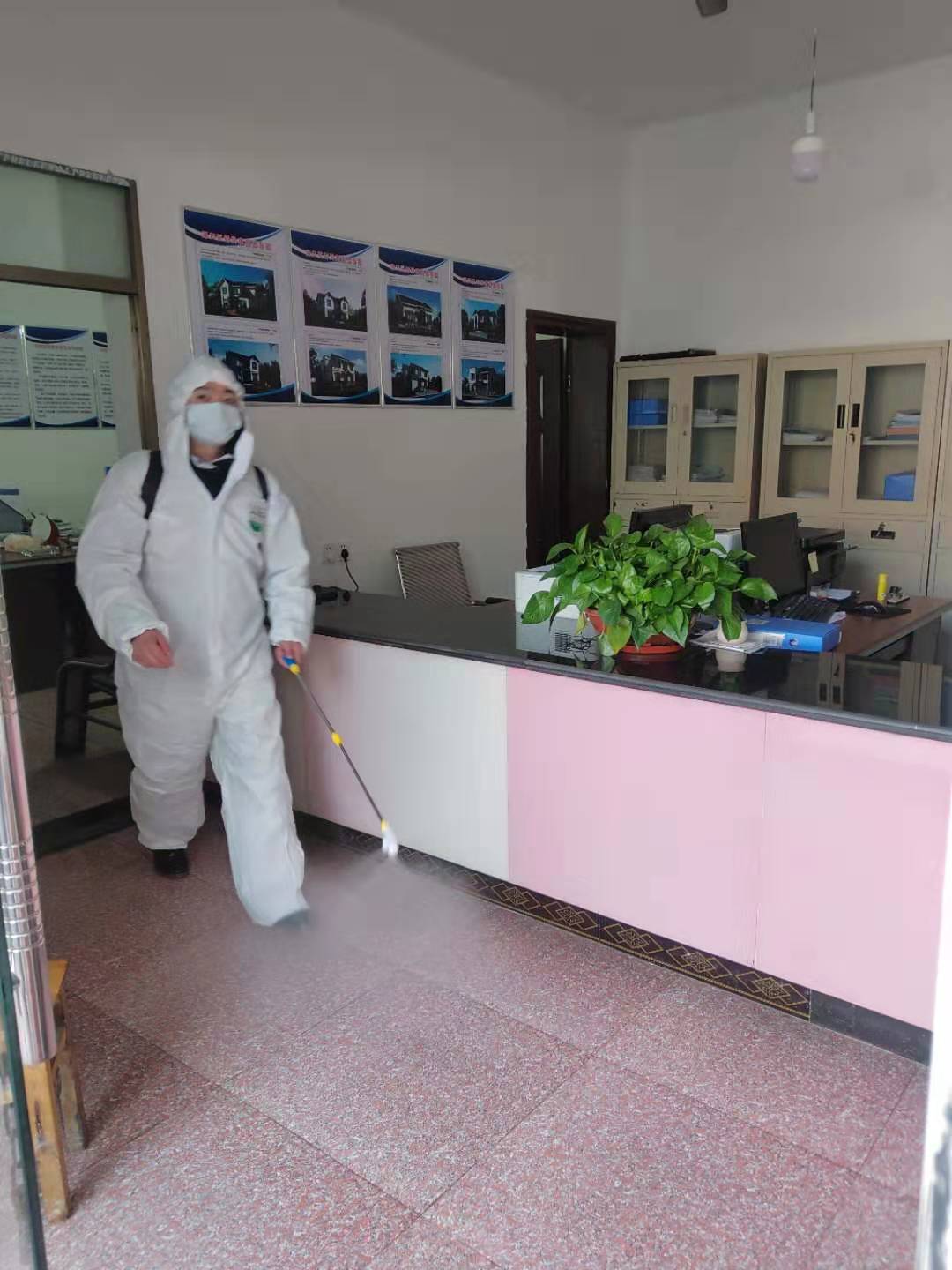 为加强新型冠状病毒感染肺炎疫情防控工作,有效阻断疫情传播,保证机关办公场所及全体工作人员的安全,1月30日上午,镇党委书记刘天职,镇长何皓,镇人大主席郭炼强,副书记张智敏等党政班子在机关指导疫情物资发及办公区域消杀工作,卫计办、畜牧站等部办组建消毒行动队,共同对前后楼办公室、公共区域及车辆进行了全面消毒。