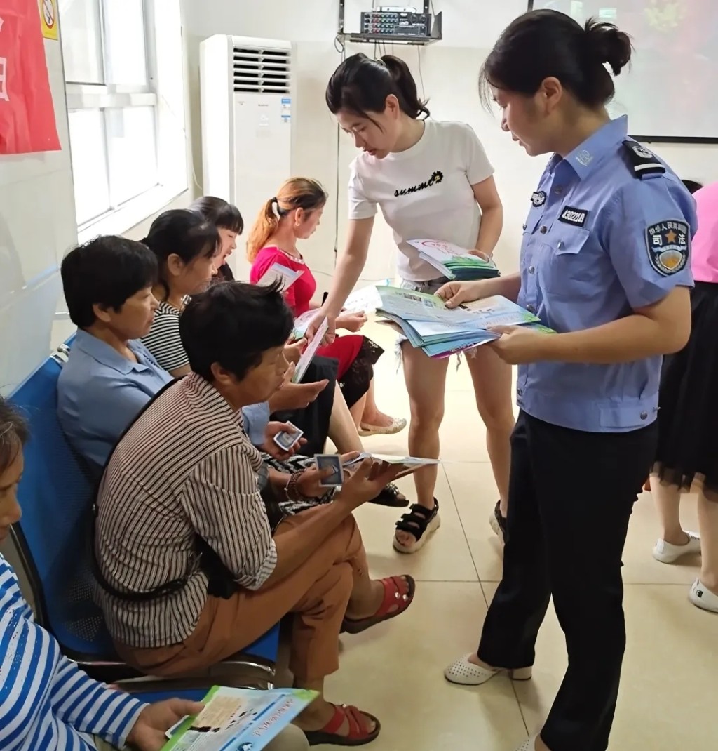 一大早,他们就利用镇卫生院为适龄妇女免费进行两癌筛查的机会,通过发放宣传单,观看宣传片等方式向妇女们科普毒品的危害,拒绝毒品,守护家庭。