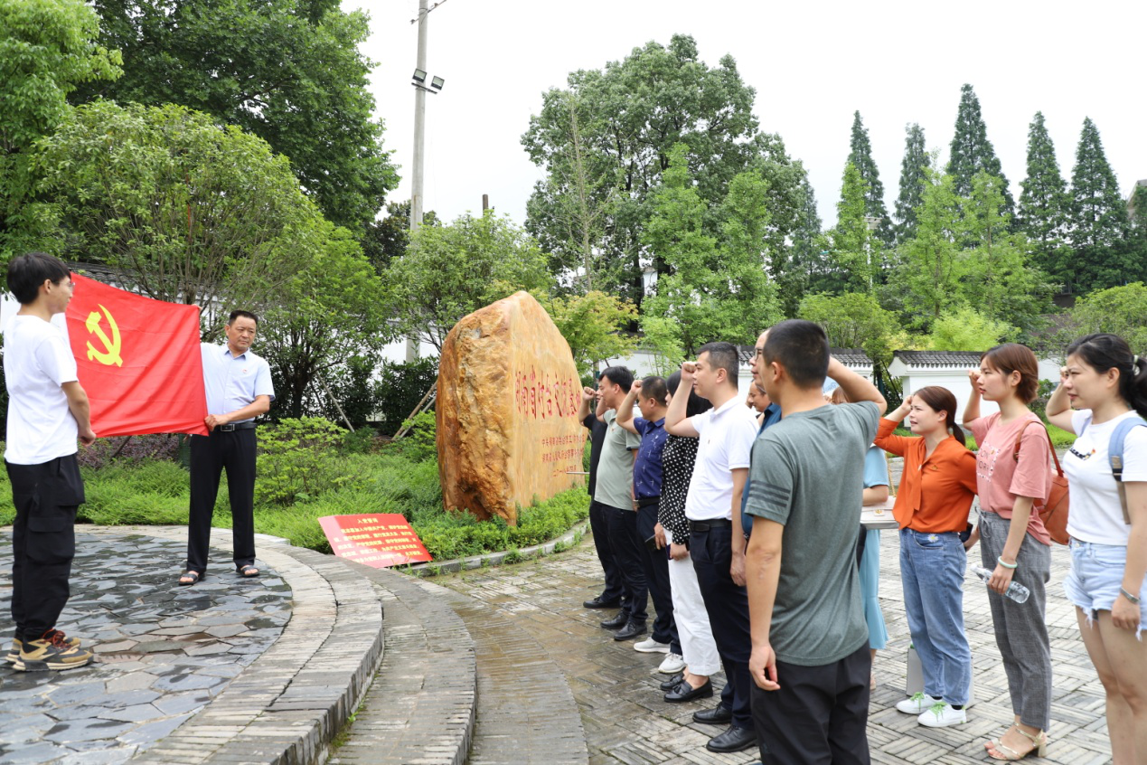 在红色教育基地,机关支部举行了重温入党誓词活动,由镇党委书记何彩凤领誓。面对鲜红的党旗,全体党员干部庄重宣誓,久久如一,不忘初心,砥砺前行。