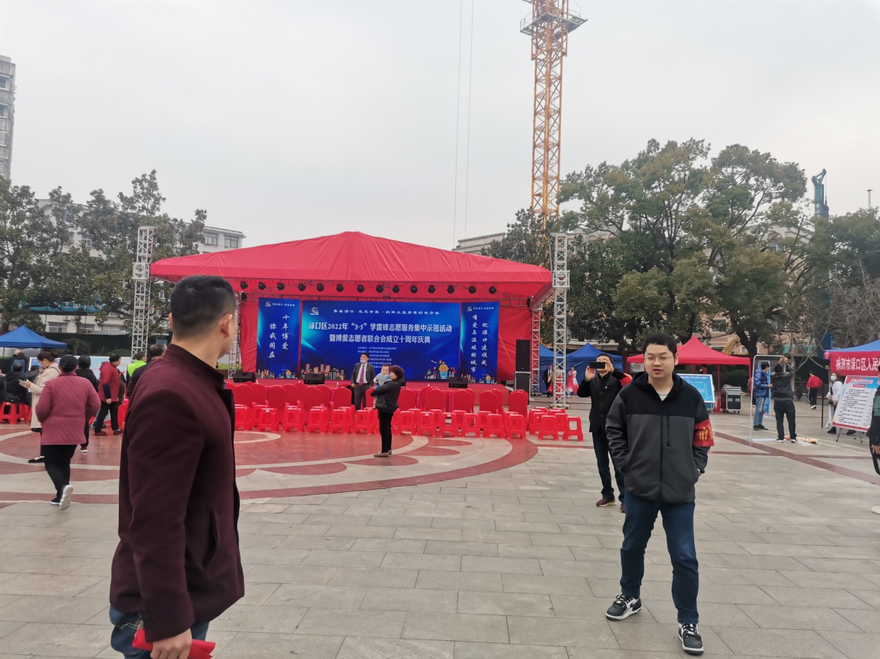 近日,在伏波广场举办的3.5雷锋月活动现场上,为维护现秩序和活动的顺利开展,"雷锋"志愿者们穿戴袖章,开展治安巡逻工作,引导百姓们有序进场,并提醒观众带好口罩,注意自身防护,配合做好疫情防控工作。