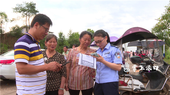 株洲市公安局渌口分局河西派出所的民警们现场为附近村民细致讲解毒品的危害,并分发“株洲市禁毒委员会告全民禁毒书”,发动村民参与2022株洲“全民禁毒宣传月”主题活动。