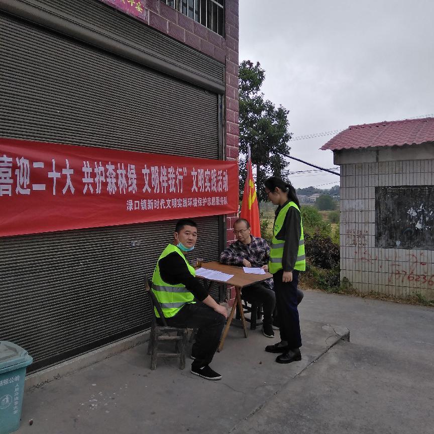 渌口镇开展"喜迎二十大、共护森林绿、文明伴我行"文明实践活动