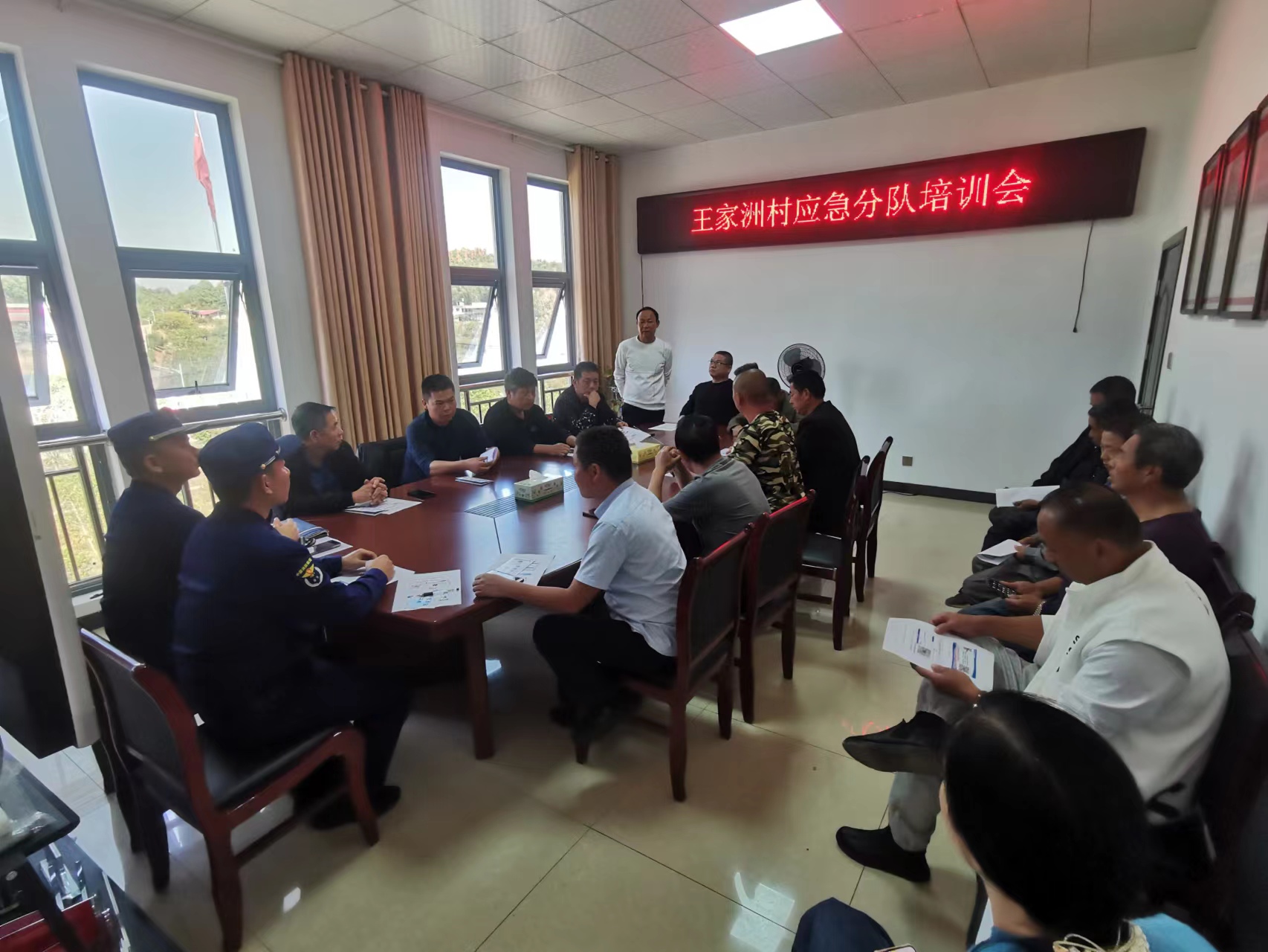 渌口区消防大队副站长罗恺赟和渌口区消防大队消防员贺自强来到王家洲村,对应急分队成员进行培训。会上明确了应急分队成员的职责,并对其工作提出要求,所有成员在通知发出后必须15分钟内到场。