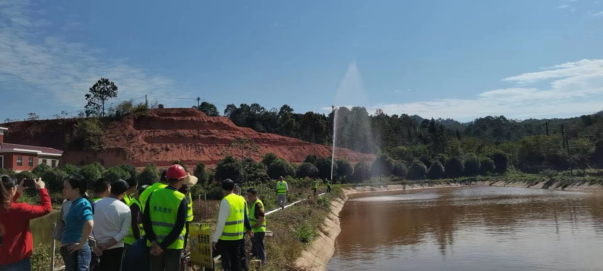王家洲村应急分队成员来到池塘边,对手抬机动消防泵进行模拟试用。
