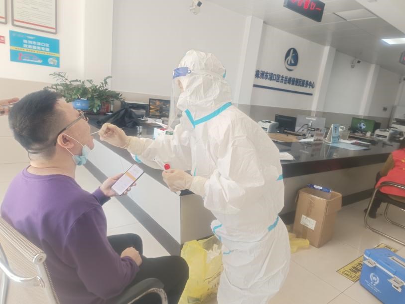 国庆以来,省内疫情遍地开花,疫情防控形势严峻,为及时全面排查疫情风险隐患,古岳峰镇卫生院副院长杨国军和医务人员彭安坤在核酸检测一线已连续工作30多天没有休息。他们晚上需要值守高速口核酸采样点,白天需要入户给居家隔离人员核酸采样,看似简单的动作重复了成千上万次,长时间的穿戴防护服跟橡胶手套,使他们的双手被汗水浸泡的泛白,直到精疲力尽的脱下防护服。高强度长时间的工作,他们没有怨言、没有退缩,坚守岗位,没有丝毫懈怠,用实际行动诠释了医者仁心。