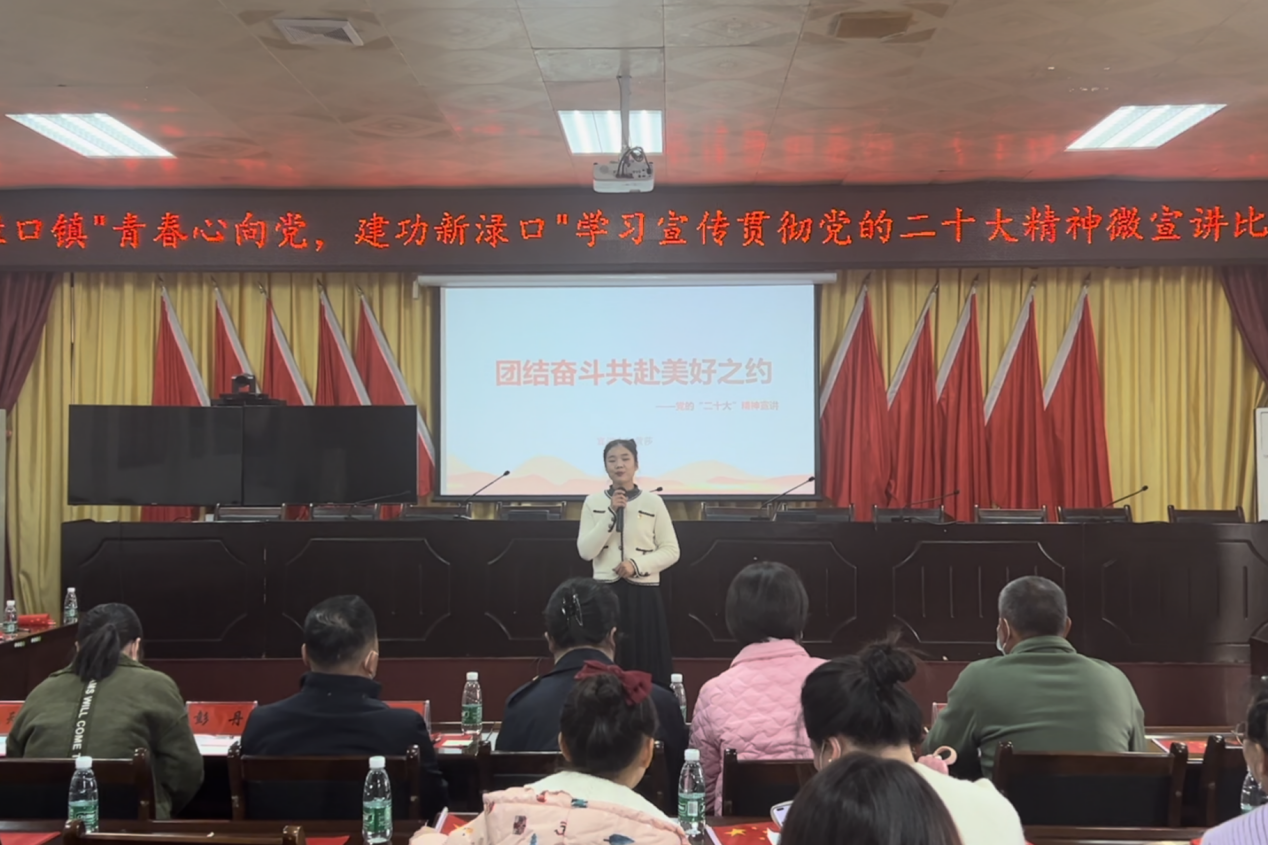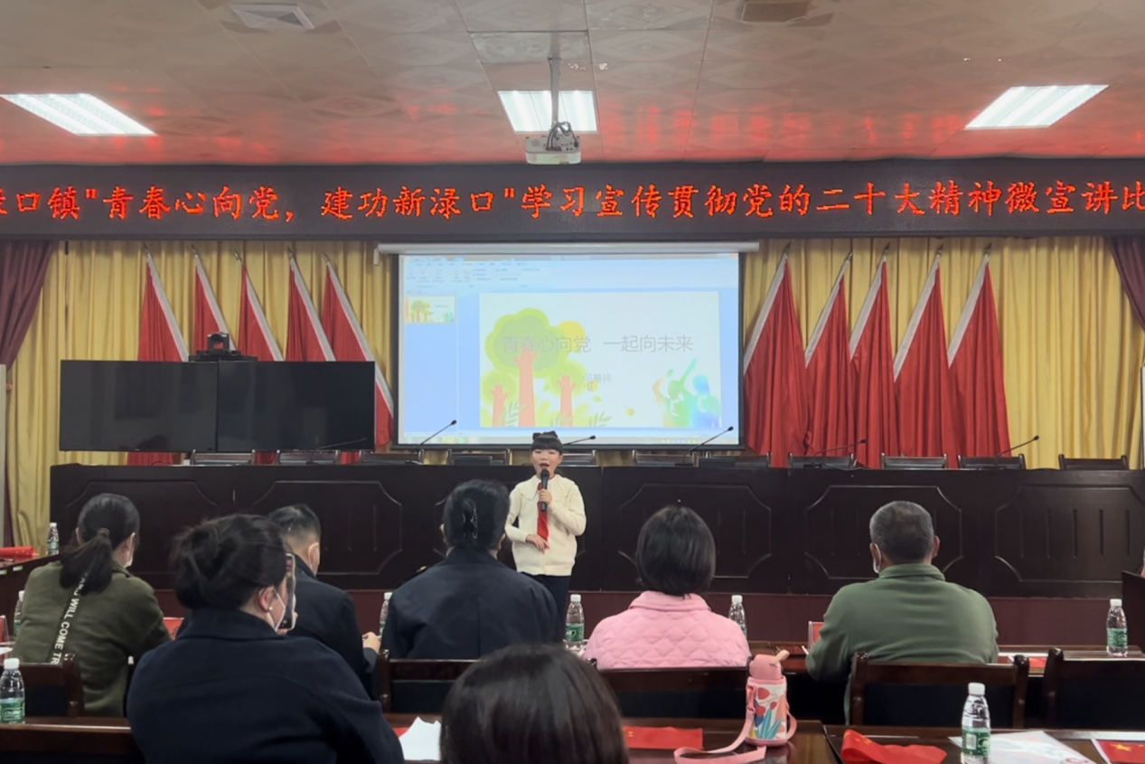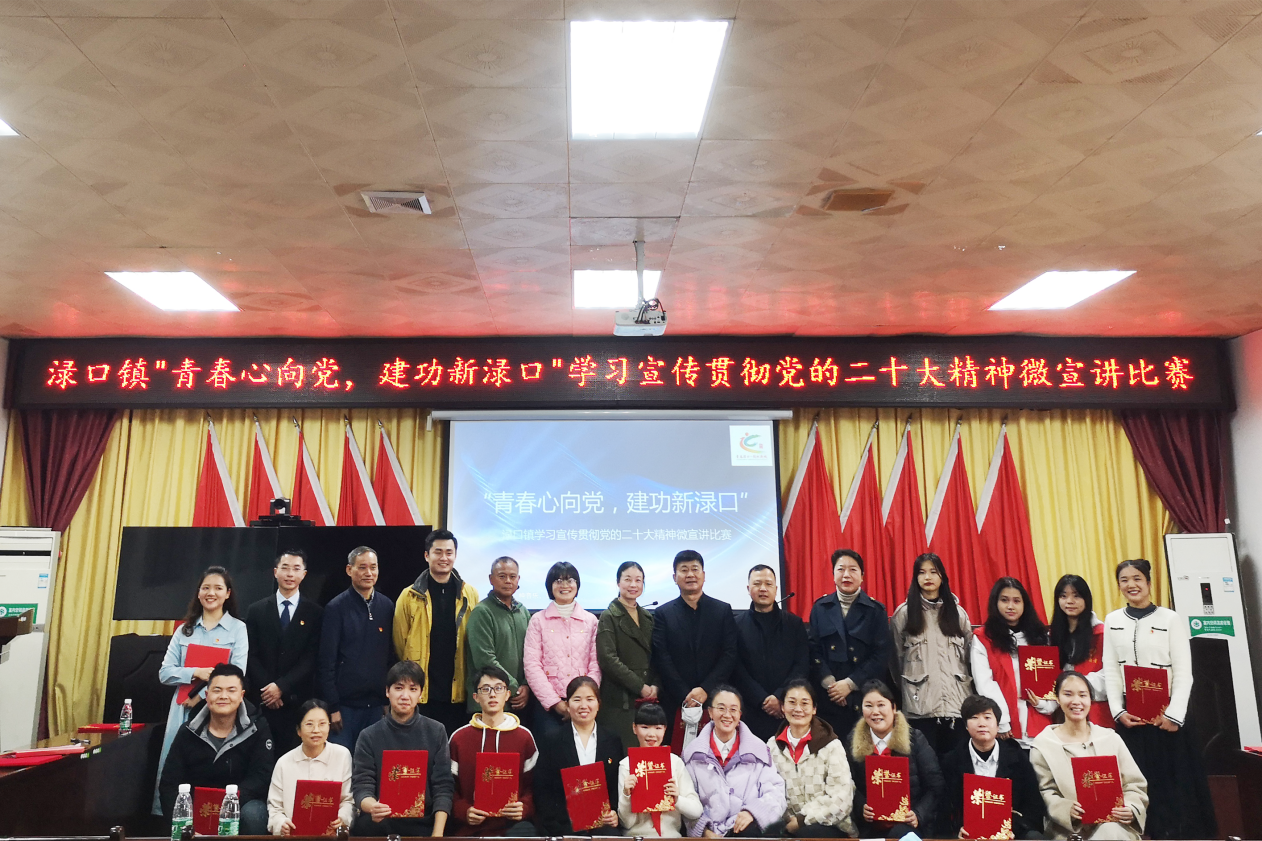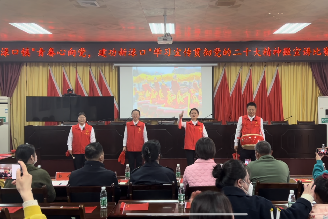 1月10日,渌口镇举办"青春心向党,建功新渌口"学习宣传贯彻党的二十大精神微宣讲比赛。活动以"微宣讲+党的二十大精神知识抢答+同唱一首歌"的形式,合力奏响党的二十大精神宣讲最强音。