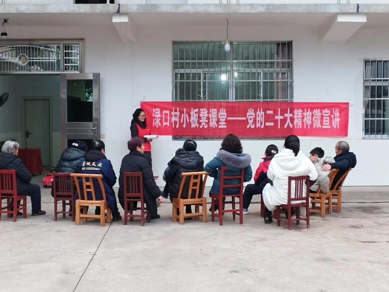 为将全村的思想行动统一到党的二十大精神上来,确保城乡居民医疗保险工作顺利开展,应缴尽缴。渌口村高度重视,精心策划,近日,渌口镇渌口村新时代文明实践站理论宣讲志愿服务队在渌口村鄢家湾组,通过"小板凳课堂"微宣讲进基层,用通俗易懂的语言,结合医保缴费工作,开展了一堂别开生面的宣讲活动。宣讲结束后上门入户发放医保缴纳宣传彩页、一封信,强调参加城乡居民医疗保险的重要性,确保居民群众看得见、听得懂、用得上,主动参与医保缴费。