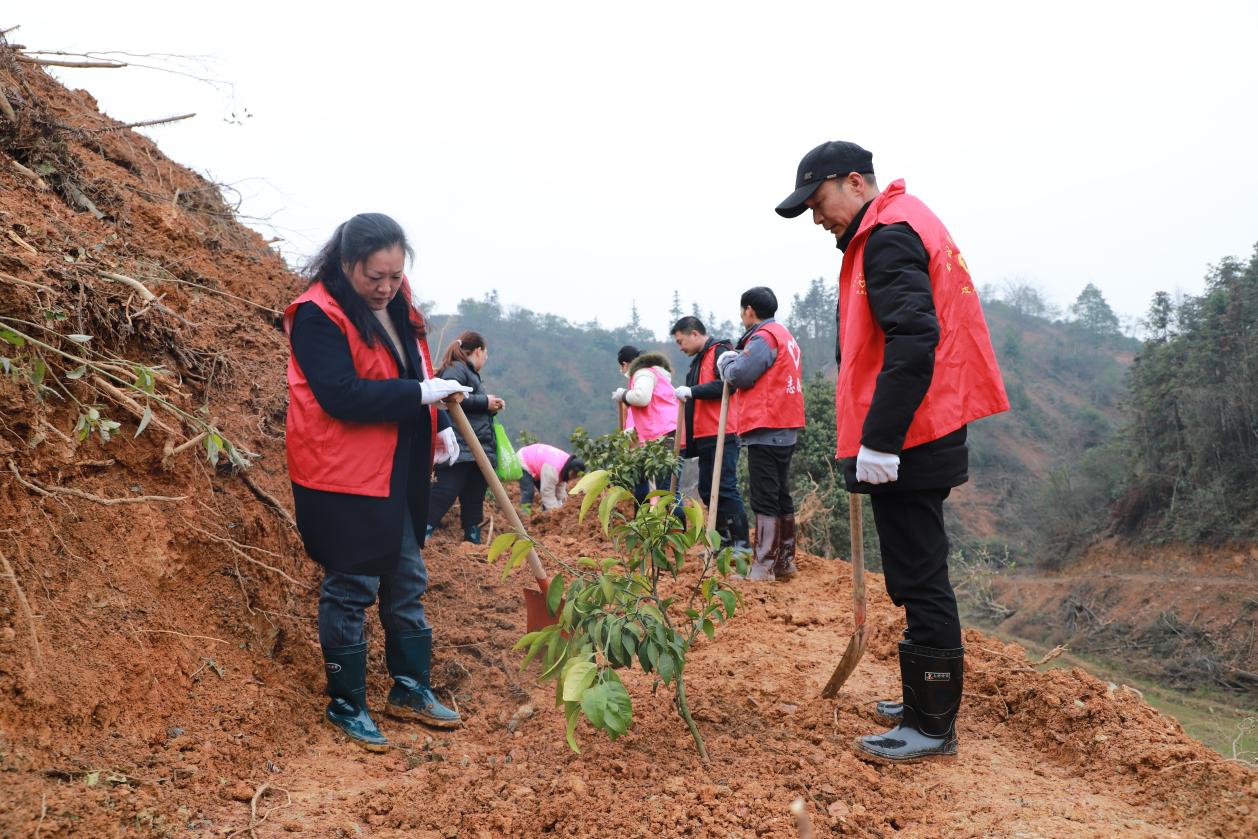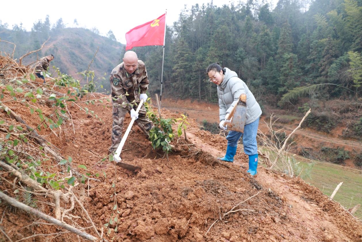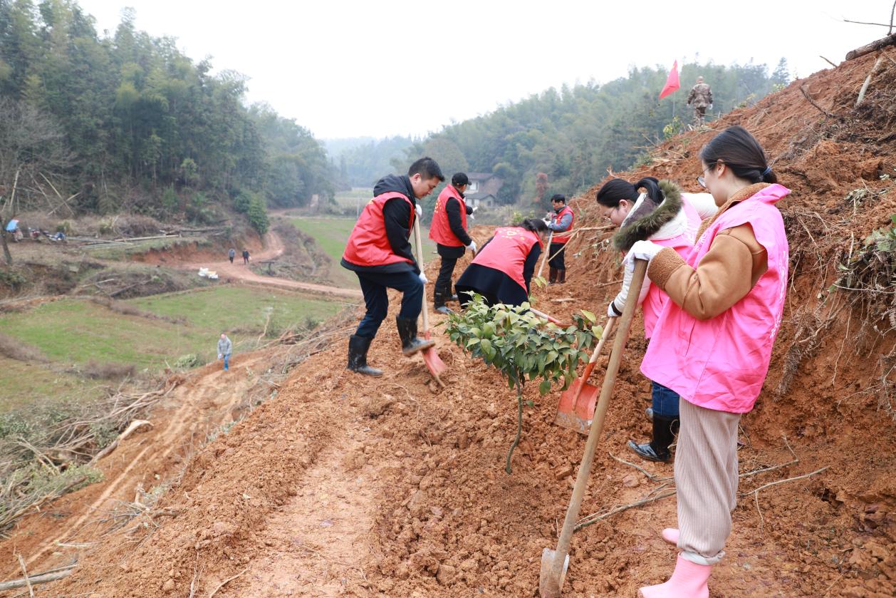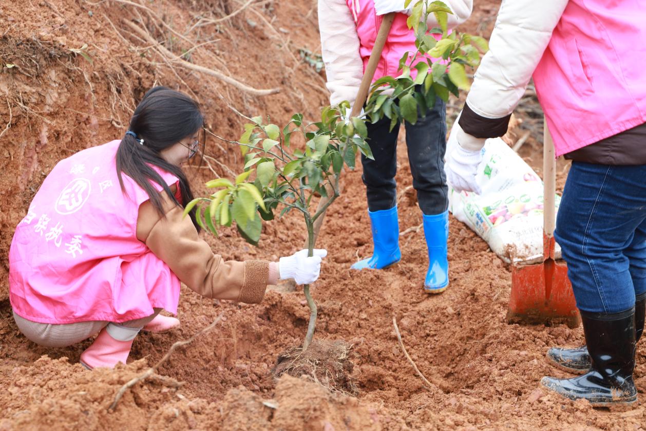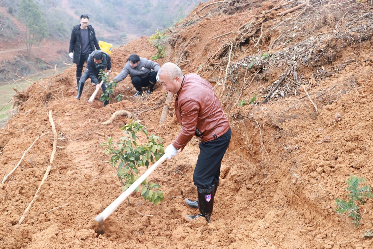 人勤春早农事忙,不误农时不负春。在淦田镇淦田村"红美人"柑橘种植基地里,干部群众齐上阵,撸起袖子,挥着锄头,挖坑、撒肥、栽苗、填土,现场一片热火朝天的劳动景象。