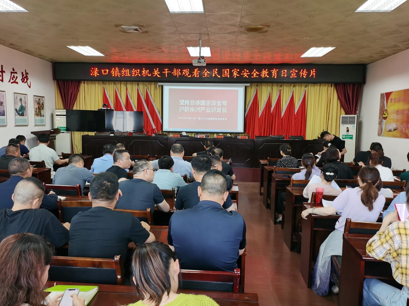 同时,渌口镇通过组织机关干部集中观看《株洲市第八个全民国家安全教育日宣传片》视频,利用电子显示屏滚动播放宣传标语等方式,开展"4.15"第八个全民国家安全教育日系列宣传活动,进一步增强机关干部国家安全意识和素养,夯实以新安全格局保障新发展格局的社会基础。