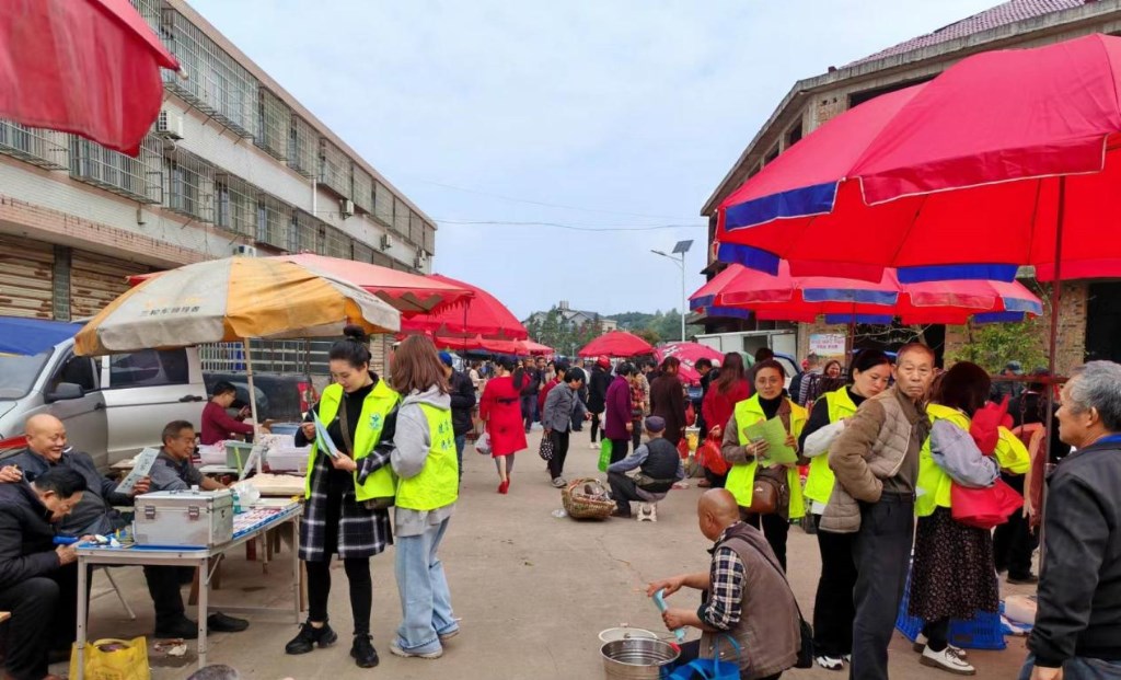 近日,古岳峰镇组织开展河长制宣传进集市活动,志愿者们身穿马甲,为赶集的群众发放“河长制”宣传手册,引导广大村民争当河湖“保护者”。