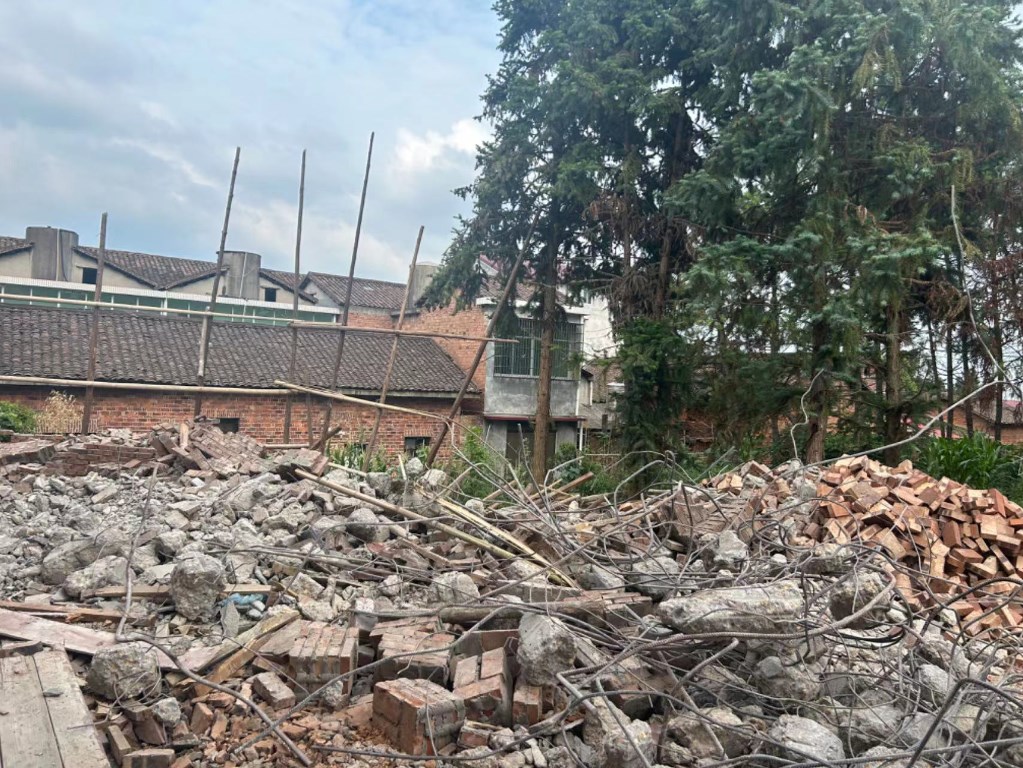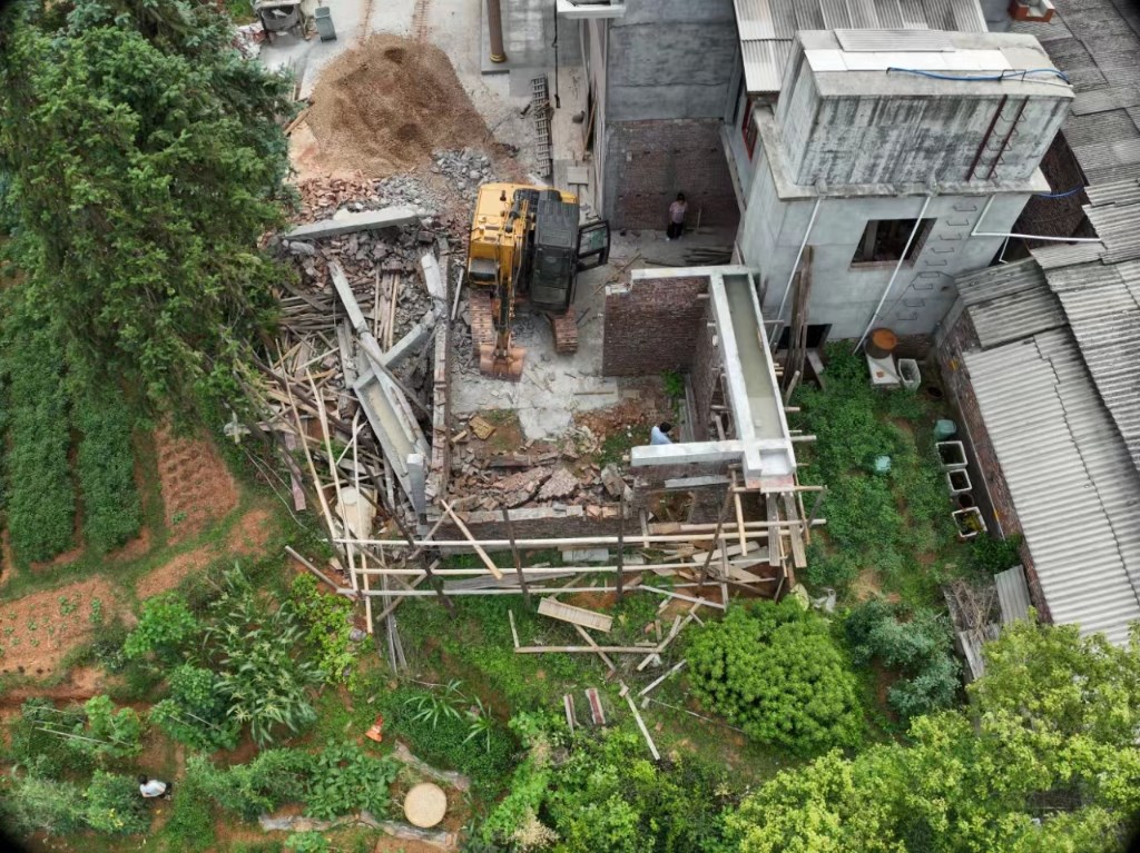 为有效遏制违法违规建设行为,6月16日下午,古岳峰镇开展“亮剑”拆违行动,镇行政综合执法大队依法对向阳村唐某某未经审批违法搭建的60平米的杂屋进行了拆除。