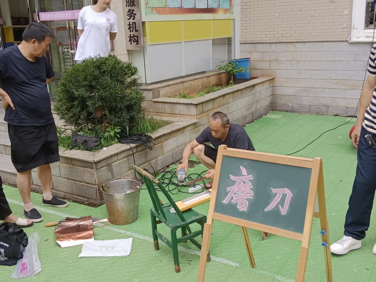为强化小区党支部建设,充分发挥基层党建动能,积极配合在职党员进社区、进小区,让党员干部深扎群众,深入基层,落实"我为群众办实事",近日,渌口镇向阳社区为主体,邀请渌口区行政审批局、渌口区公安局、渌口区人民医院、渌口镇和"88潮流"理发,在碧鸿佳园小区内开设"便民服务"点,业委会主任侯连军更是派出了物业公司内的能人,支起了磨剪子、磨菜刀的服务点。