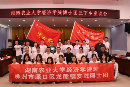 7月7日,湖南农业大学经济学院博士团乡村调研实践活动在渌口区龙船镇举行。本次博士调研团队由湖南农业大学经济学院院长刘辉带队,学院专家、学生一行共24人,就龙船镇村集体经济开展实地调研。