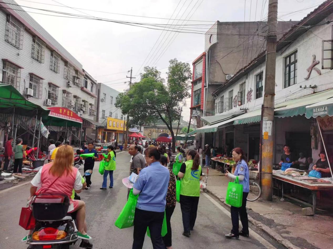 在淦田社区集市上,禁毒志愿者以发放禁毒小扇子、手提袋、宣传册的形式向商贩和过往的居民普及毒品的种类、危害及禁毒法律法规等相关禁毒知识,倡导群众养成健康的生活方式,积极参与禁毒斗争,共建无毒家园。