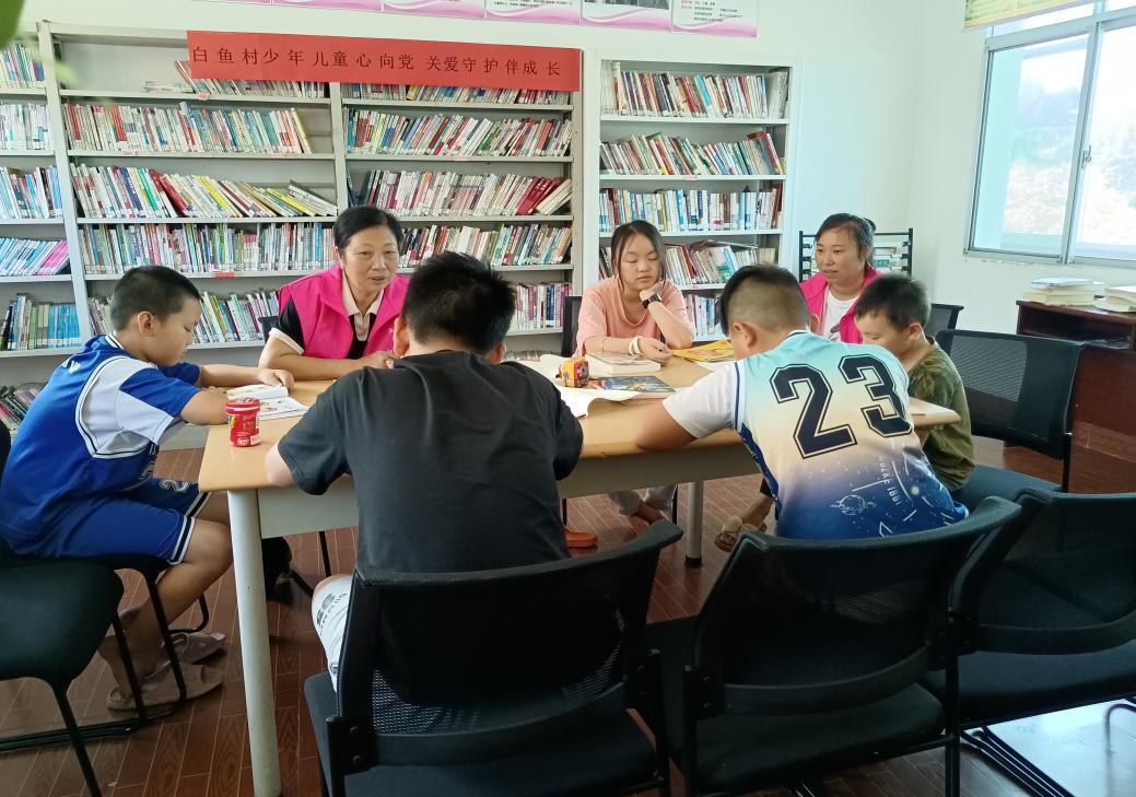 7月24日,白鱼村妇联执委们以阅读会的形式开展活动,活动中,执委们为孩子讲述革命传统故事,同时引导大家诵读经典书籍,感受优秀传统文化的魅力;之后让孩子们自由选择自己喜欢阅读的书本,相互介绍书中的内容,并鼓励孩子们积极发言,主动分享自己喜欢的故事和自己的心得体会。